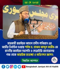 মারকাযী জমঈয়ত আহলে হাদীস পাকিস্তান এর আমীর নির্বাচিত হওয়ায় শাইখ ড. হাফেয আব্দুল কারীম হাফিযাহুল্লাহ-কে বাংলাদেশ জমঈয়তে আহলে হাদীসের মাননীয় সভাপতি ও সেক্রেটারি জেনারেলের পক্ষ থেকে আন্তরিক শুভেচ্ছা ও অভিনন্দন জ্ঞাপন: