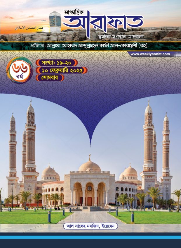 বাংলাদেশে জমঈয়তে আহলে হাদীসের মুখপত্র ধর্ম-দর্শন, শিক্ষা-সাহিত্য, সংস্কৃতি ও ইতিহাস-ঐতিহ্য বিষয়ক গবেষণা পত্রিকা সাপ্তাহিক আরাফাত ৬৬ বর্ষ ১৯-২০ সংখ্যা সংগ্রহ করতে যোগাযোগ করুন: মোবাইল: ০১৯৩৩৩৫৫৯১০