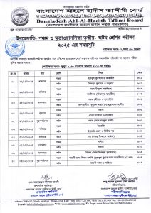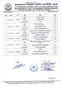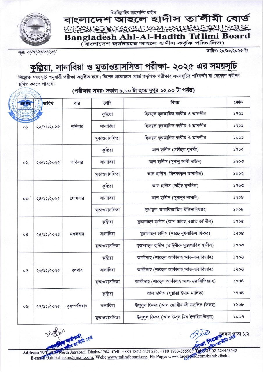 বাংলাদেশ জমঈয়তে আহলে হাদীস কর্তৃক পরিচালিত বাংলাদেশ আহলে হাদীস তা’লীমী বোর্ড-এর কুল্লিয়া, সানাবিয়া, মুতাওয়াসসিতা, অষ্টম ও পঞ্চম শ্রেণির পরীক্ষার রুটিন-২০২৫