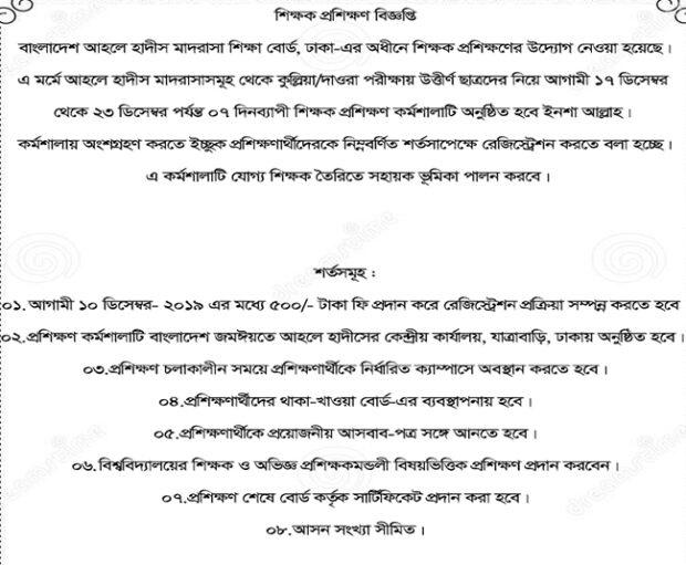 শিক্ষক প্রশিক্ষণ বিজ্ঞপ্তি