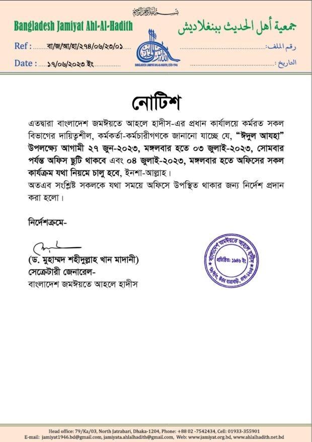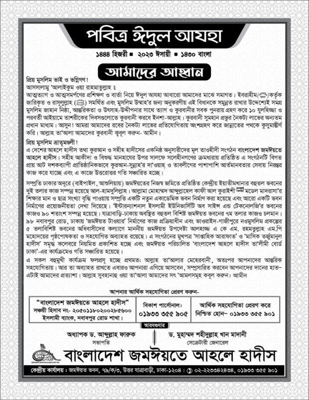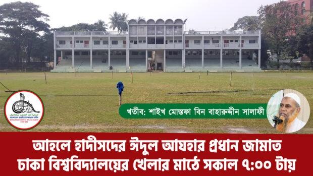 আহলে হাদীসদের ঈদুল আযহার প্রধান জামাত ঢাকা বিশ্ববিদ্যালয়ের কেন্দ্রীয় খেলার মাঠে সকাল ৭:০০ টায় অনুষ্ঠিত হবে ইন শা আল্লাহ | বাংলাদেশ জমঈয়তে আহলে হাদীস