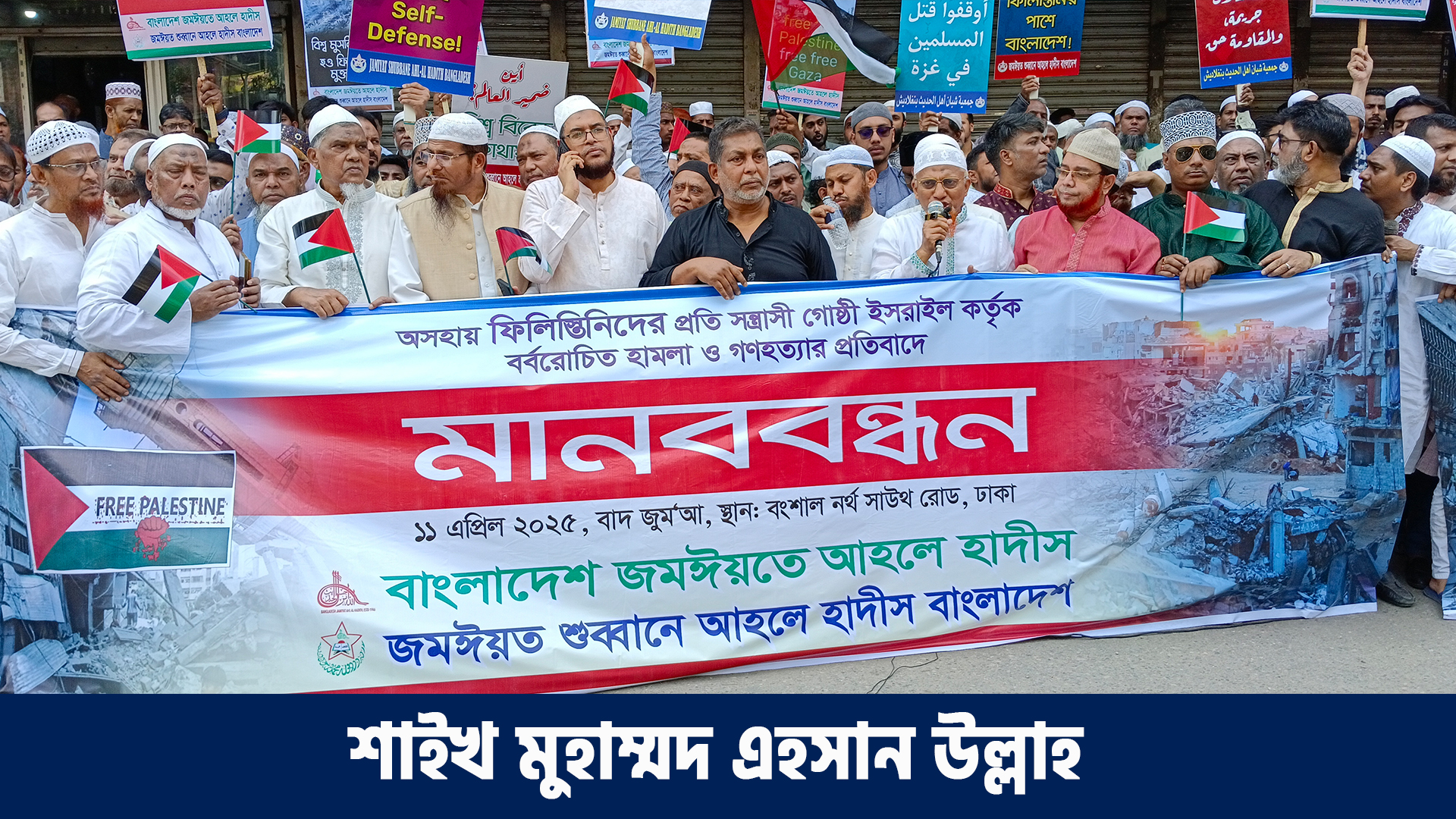 May42025 Share this post Share on FacebookShare on Facebook TweetShare on Twitter Share on LinkedInShare on LinkedIn Share on WhatsAppShare on WhatsApp Pin itShare on Pinterest Post navigationPreviousPrevious post:ইসরাইল কতৃক বর্বরচিত হামলা ও গণহত্যার প্রতিবাদে মানববন্ধন শাইখ মুহাম্মদ আবদুল মাতীনNextNext post:সাপ্তাহিক আরাফাত | ৬৬ বর্ষ | ২৯-৩০ সংখ্যা | বাংলাদেশ জমঈয়তে আহলে হাদীস | Weekly Arafat-66-29-30Related Postsজুমুআর খুতবা | নিজেদের উপর অন্যকে প্রাধান্য দেয়া | অধ্যাপক ড. আব্দুল্লাহ ফারুক | www.jamiyat.org.bdApril 19, 2026সাপ্তাহিক আরাফাত | ৬৭ বর্ষ | ২৫-২৬ সংখ্যা | বাংলাদেশ জমঈয়তে আহলে হাদীস | Weekly Arafat-67-25-26April 14, 2026মাসিক তর্জুমানুল হাদীস ৯ম বর্ষ ১ম সংখ্যা (এপ্রিল-২০২৬) The Monthly Tarjumanul Hadeeth (April-09-01-2026) | বাংলাদেশ জমঈয়তে আহলে হাদীসApril 12, 2026জুমুআর খুতবা | শাওয়াল মাসে সংগঠিত বিভিন্ন ঘটনাবলি থেকে আমাদের জন্য শিক্ষা | অধ্যাপক ড. আব্দুল্লাহ ফারুকApril 5, 2026মাদরাসাতুল হাদীসের ৬৩তম শিক্ষা সমাপনী অনুষ্ঠানে ইমাম বুখারীর ইলম চর্চার উপরে গুরুত্বপূর্ণ আলোচনা প্রদান করেন শাইখ ড. মুযাফফর বিন মুহসিনApril 2, 2026সৌদি আরবে ইরানের হাম*লায় যাদের হৃদয় প্রশান্ত হয় তাদের উদ্দেশ্যে কিছু কথা এবং ইহুদীবাদ ও মার্কিন সাম্রাজ্যবাদের প্রতি তীব্র নিন্দা জ্ঞাপন; আলোচক: অধ্যাপক ড. আব্দুল্লাহ ফারুক হাফিযাহুল্লাহ মাননীয় সভাপতি, বাংলাদেশ জমঈয়তে আহলে হাদীস।March 31, 2026