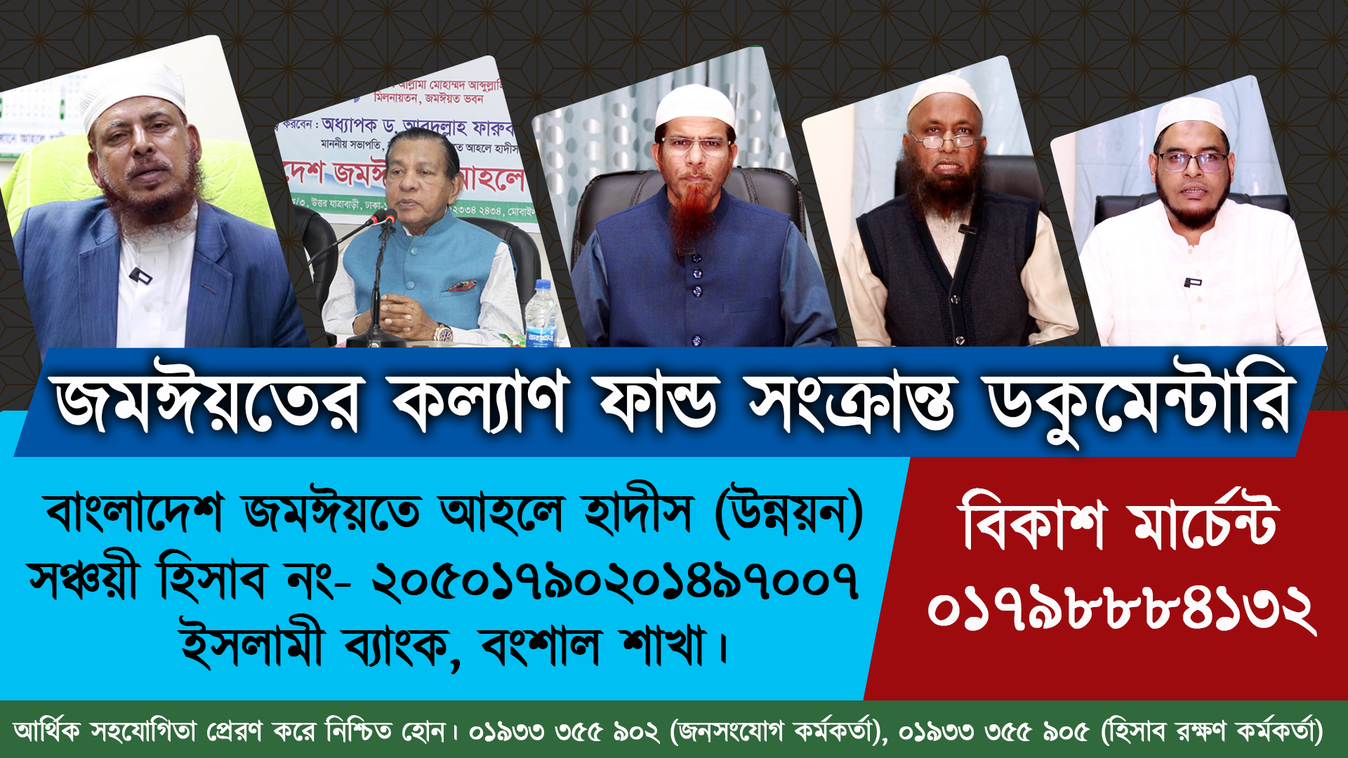 Mar22024 Share this post Share on FacebookShare on Facebook TweetShare on Twitter Share on LinkedInShare on LinkedIn Share on WhatsAppShare on WhatsApp Pin itShare on Pinterest Post navigationPreviousPrevious post:দৈনন্দিন সালাতের সময়সূচী-২০২৪ | বাংলাদেশ জমঈয়তে আহলে হাদীস | Bangladesh Jamiyat Ahl-al-Hadith | www.jamiyat.org.bdNextNext post:ফরয সালাত পরবর্তী যিকর ও দো’আ | বাংলাদেশ জমঈয়তে আহলে হাদীস | جمعية أهل الحديث ببنغلاديش | Bangladesh Jamiyat Ahl-al-HadithRelated Postsসাপ্তাহিক আরাফাত | ৬৭ বর্ষ | ২৫-২৬ সংখ্যা | বাংলাদেশ জমঈয়তে আহলে হাদীস | Weekly Arafat-67-25-26April 14, 2026মাসিক তর্জুমানুল হাদীস ৯ম বর্ষ ১ম সংখ্যা (এপ্রিল-২০২৬) The Monthly Tarjumanul Hadeeth (April-09-01-2026) | বাংলাদেশ জমঈয়তে আহলে হাদীসApril 12, 2026জুমুআর খুতবা | শাওয়াল মাসে সংগঠিত বিভিন্ন ঘটনাবলি থেকে আমাদের জন্য শিক্ষা | অধ্যাপক ড. আব্দুল্লাহ ফারুকApril 5, 2026মাদরাসাতুল হাদীসের ৬৩তম শিক্ষা সমাপনী অনুষ্ঠানে ইমাম বুখারীর ইলম চর্চার উপরে গুরুত্বপূর্ণ আলোচনা প্রদান করেন শাইখ ড. মুযাফফর বিন মুহসিনApril 2, 2026সৌদি আরবে ইরানের হাম*লায় যাদের হৃদয় প্রশান্ত হয় তাদের উদ্দেশ্যে কিছু কথা এবং ইহুদীবাদ ও মার্কিন সাম্রাজ্যবাদের প্রতি তীব্র নিন্দা জ্ঞাপন; আলোচক: অধ্যাপক ড. আব্দুল্লাহ ফারুক হাফিযাহুল্লাহ মাননীয় সভাপতি, বাংলাদেশ জমঈয়তে আহলে হাদীস।March 31, 2026জুমু’আর খুৎবা | রমাযানের শিক্ষাকে আমরা যেন ভুলে না যাই | অধ্যাপক মুহাম্মদ আসাদুল ইসলাম | Jamiyat BDMarch 30, 2026